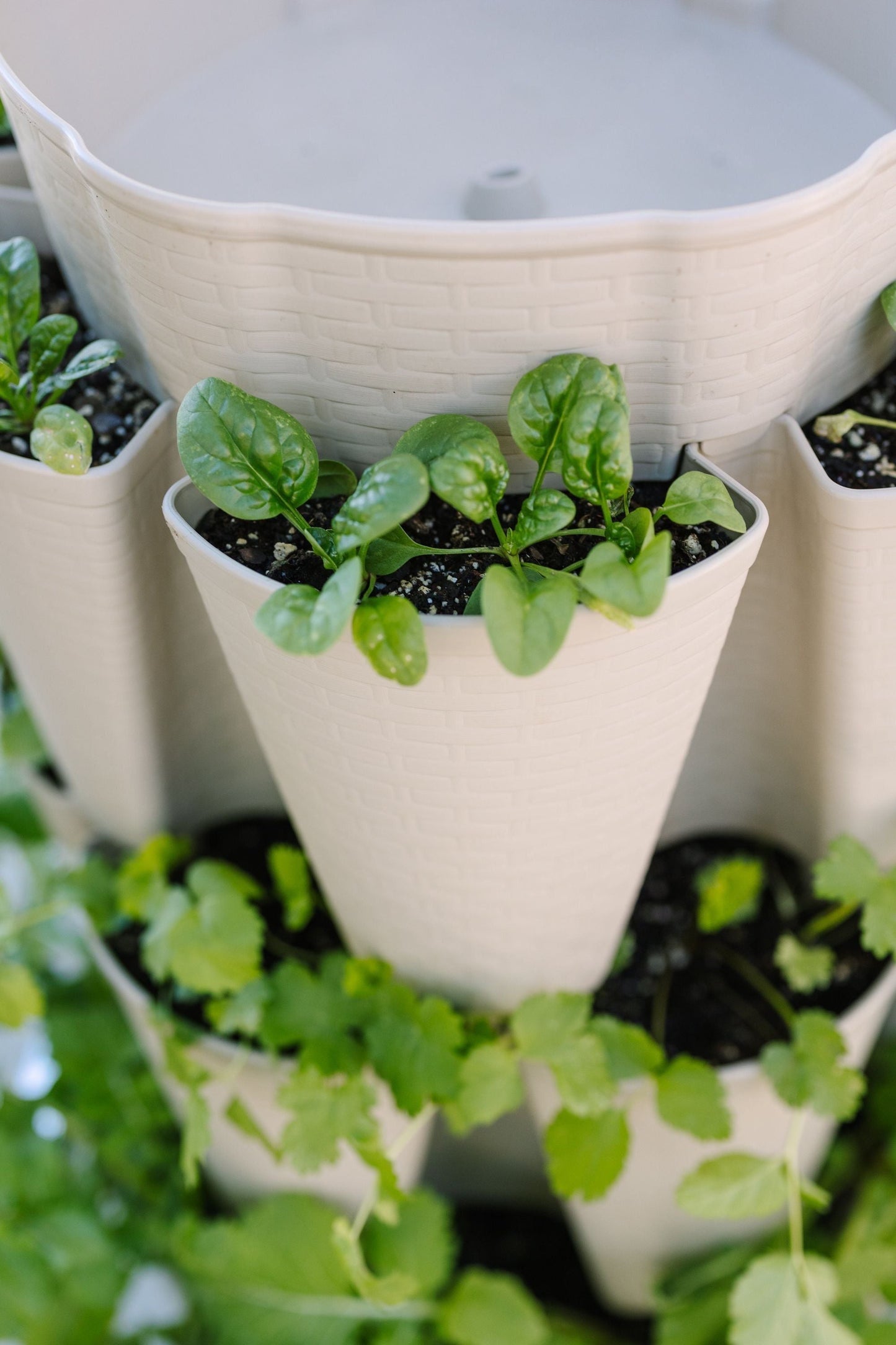 Basket Weave Texture - Make gardening accessible and enjoyable with our patented five-tier vertical planter proudly made in East Tennessee. This vertical garden planter is perfect for growing a wide variety of small and large plants including vegetables, herbs, flowers, root crops, and more. See how it works and experience the joy of containerized gardening for yourself!