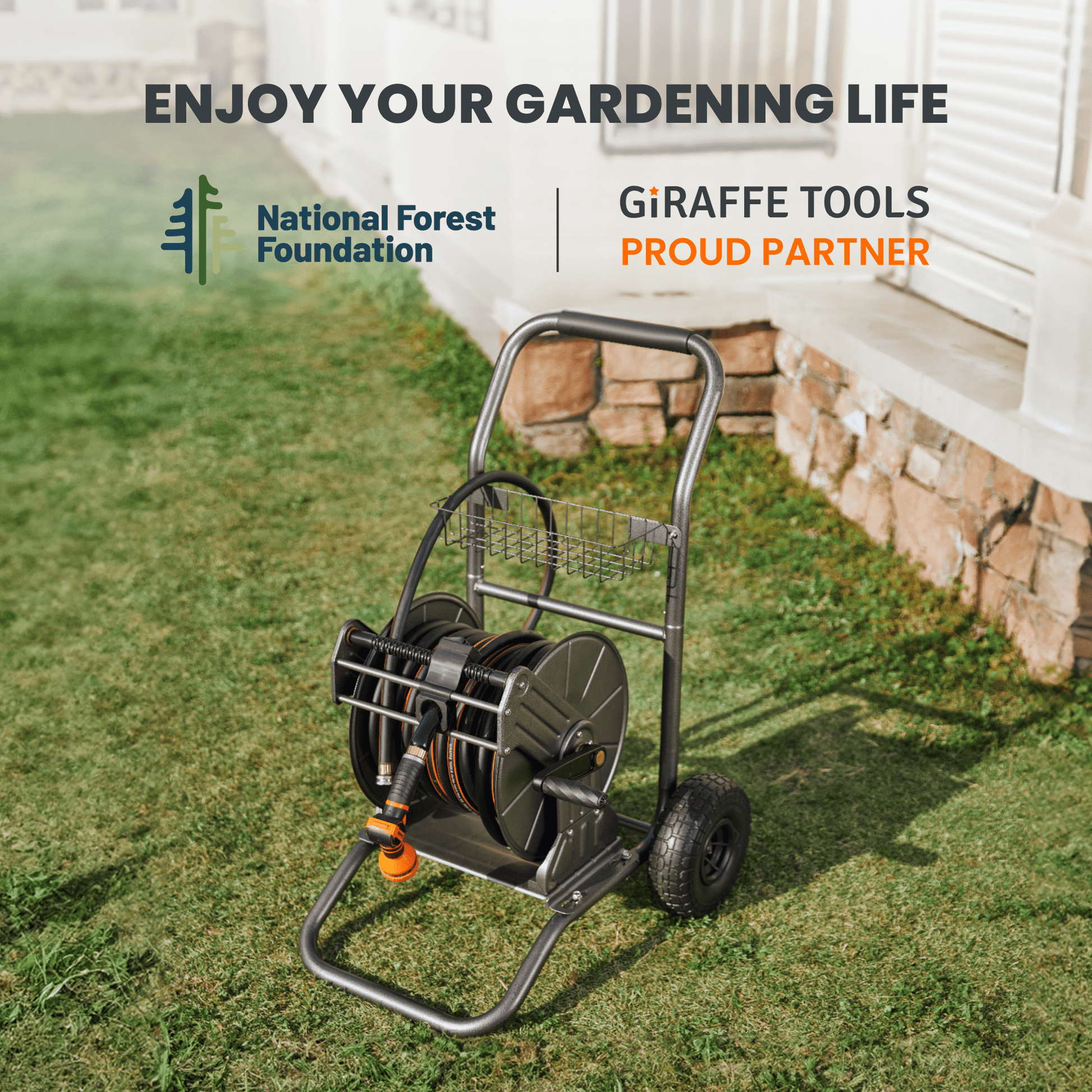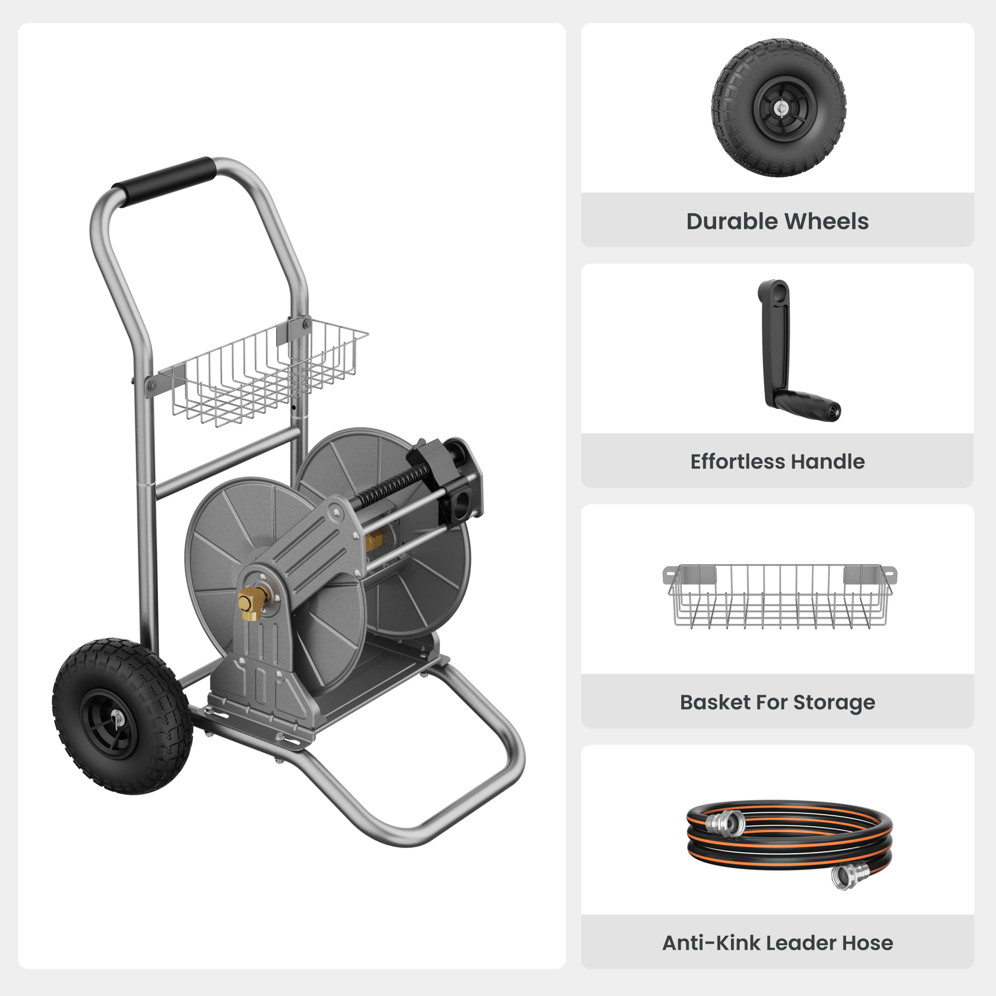 Garden Hose Reel Cart-2 Wheels-Stainless Steel-Heavy Duty