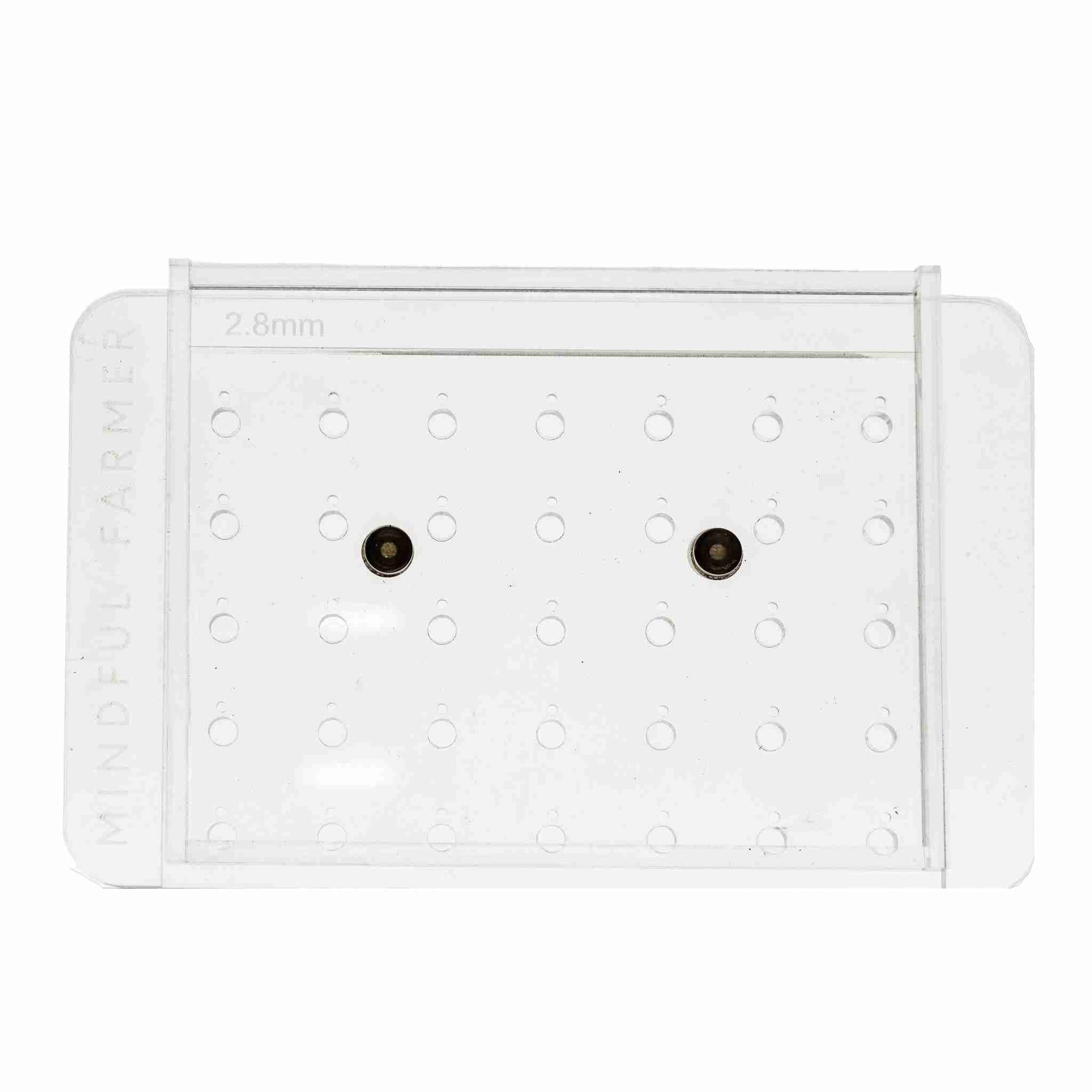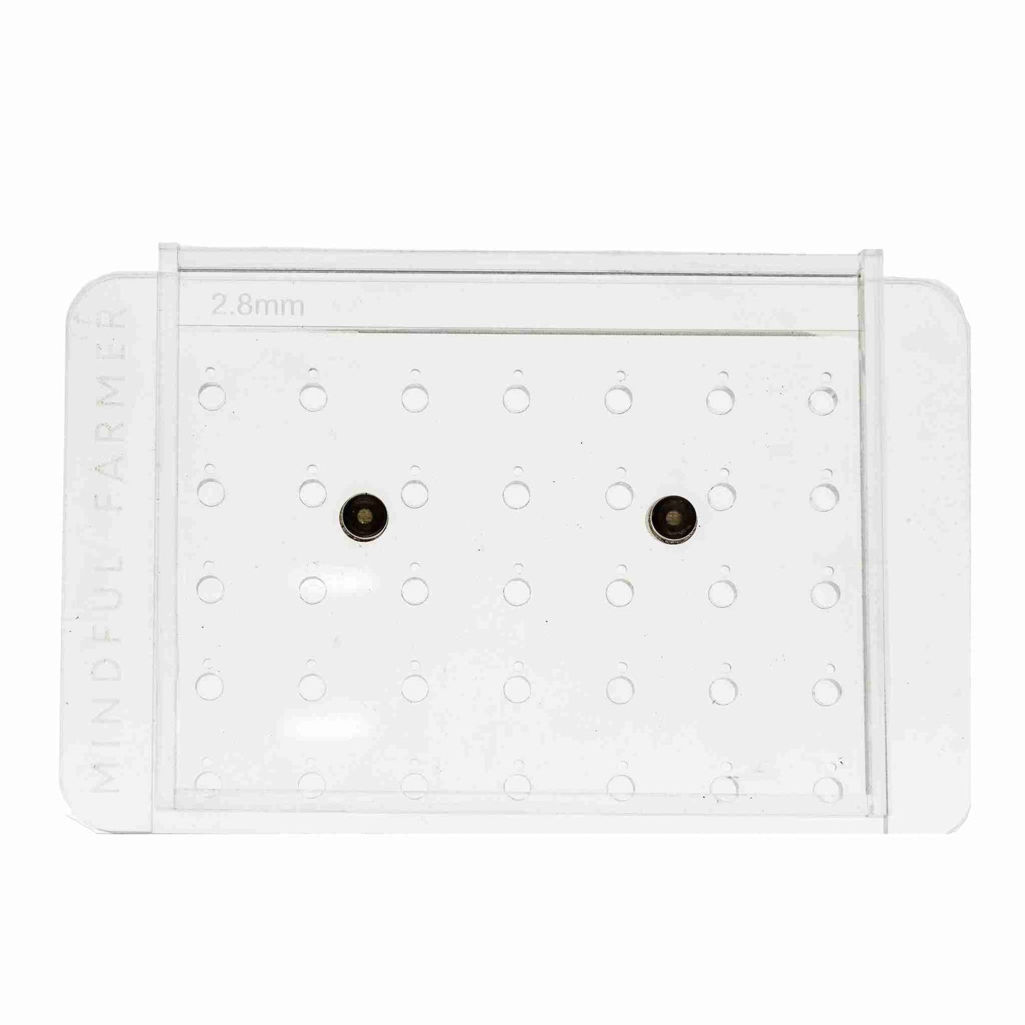 No grooves or screws for dirt and seed to get caught, no binding or breaking of plates, no moving parts or adjustments; just plates quickly interchangeable yet held firmly by neodymium magnets for superior stability while sowing your soil blocks.